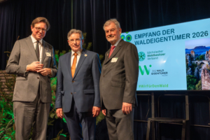 Am Branchenstand der Deutschen Forstwirtschaft e. V. ist ebenfalls die Arbeitsgemeinschaft Deutscher Waldbesitzerverbände (AGDW – Die Waldeigentümer) vertreten, die traditionell am Vorabend der Grünen Woche zum Empfang der Waldeigentümer einlädt und damit den branchenweiten Austausch auf und rund um die Messe weiter stärkt. 2026 ist der Sächsische Waldbesitzerverband e. V. der ausrichtende Landesverband. Im Mittelpunkt des Abends stand die Präsentation des Clusters Forst und Holz aus Sachsen. AGDW-Präsident Prof. Andreas Bitter und Georg Lindner, Vorsitzender des Sächsischen Waldbesitzerverbandes, begrüßten rund 1.200 Gäste aus ganz Deutschland aus dem Sektor Forst und Holz. Die hohe Beteiligung wertete Prof. Andreas Bitter als Vertrauensbeweis für die Arbeit der Waldbesitzenden, die durch nachhaltige Waldbewirtschaftung einen wichtigen gesellschaftlichen Mehrwert schaffen. Georg Lindner betonte die zentrale Rolle privater, kommunaler und kirchlicher Waldeigentümer für den Erhalt unserer Lebensgrundlagen und hob die Bedeutung nachhaltiger Holzproduktion für Wertschöpfung und Klimaschutz hervor. Unterstützt wurden die Sächsischen Waldbesitzer durch das Staatsministerium für Umwelt und Landwirtschaft (SMUL) sowie dem Staatsbetrieb Sachsenforst, die sich auf einer Sonderfläche präsentierten.