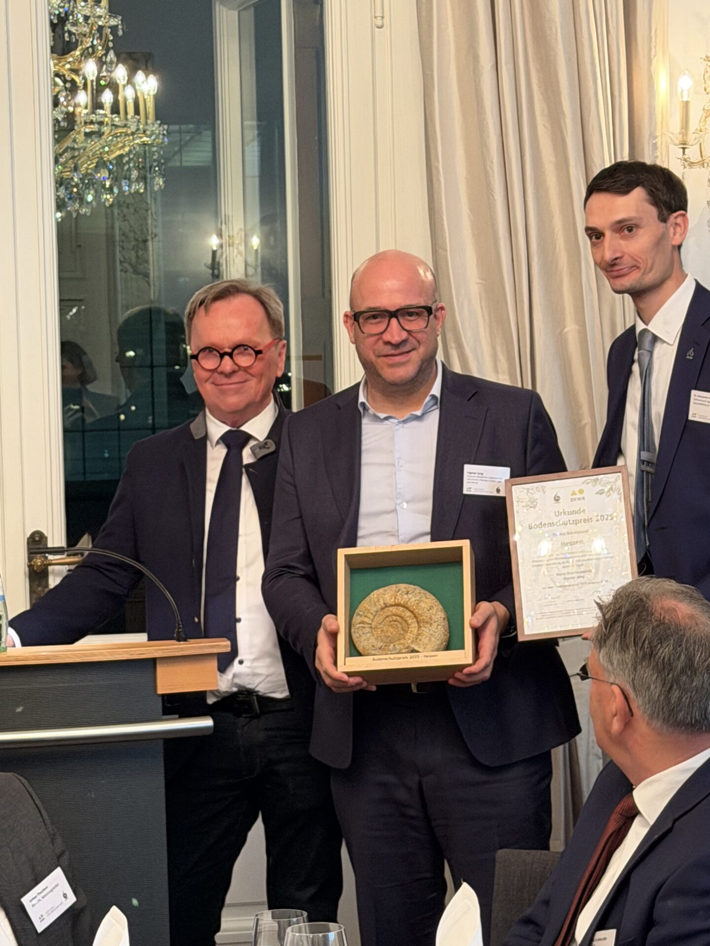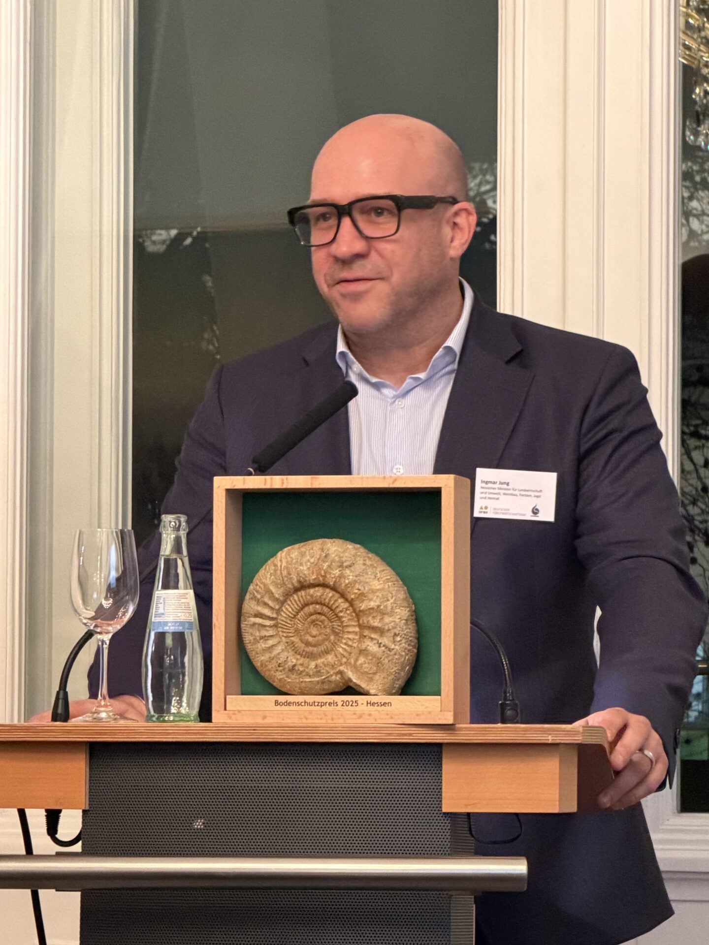 Ingmar Jung, Forstminister des Landes Hessen, sagte: „Der Bodenschutzpreis ist für uns als Land Hessen Anerkennung und Ansporn zugleich. Die Auszeichnung bestätigt den Weg, den wir in Hessen gemeinsam mit der forstlichen Praxis, unseren privaten und kommunalen Waldbesitzern, der Wissenschaft und der Verwaltung gehen: Wir verstehen den Schutz des Waldbodens als integralen Bestandteil einer nachhaltigen Forstwirtschaft und als Grundlage unseres Waldökosystems. Diesen Ansatz wollen wir künftig weiterentwickeln und die Zusammenarbeit zwischen Forstwirtschaft, Wasserwirtschaft und Bodenschutz weiter stärken. Wir richten den Blick konsequent auf die langfristigen Wirkungen, denn die Zukunft unserer Wälder entscheidet sich nicht allein in den Baumkronen. Sie entscheidet sich auch im Boden.“