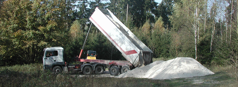 In geringem Umfang vom Boden aus: mit feinem Kalk und Einsatz von Verblasegeräten von Waldwegen aus